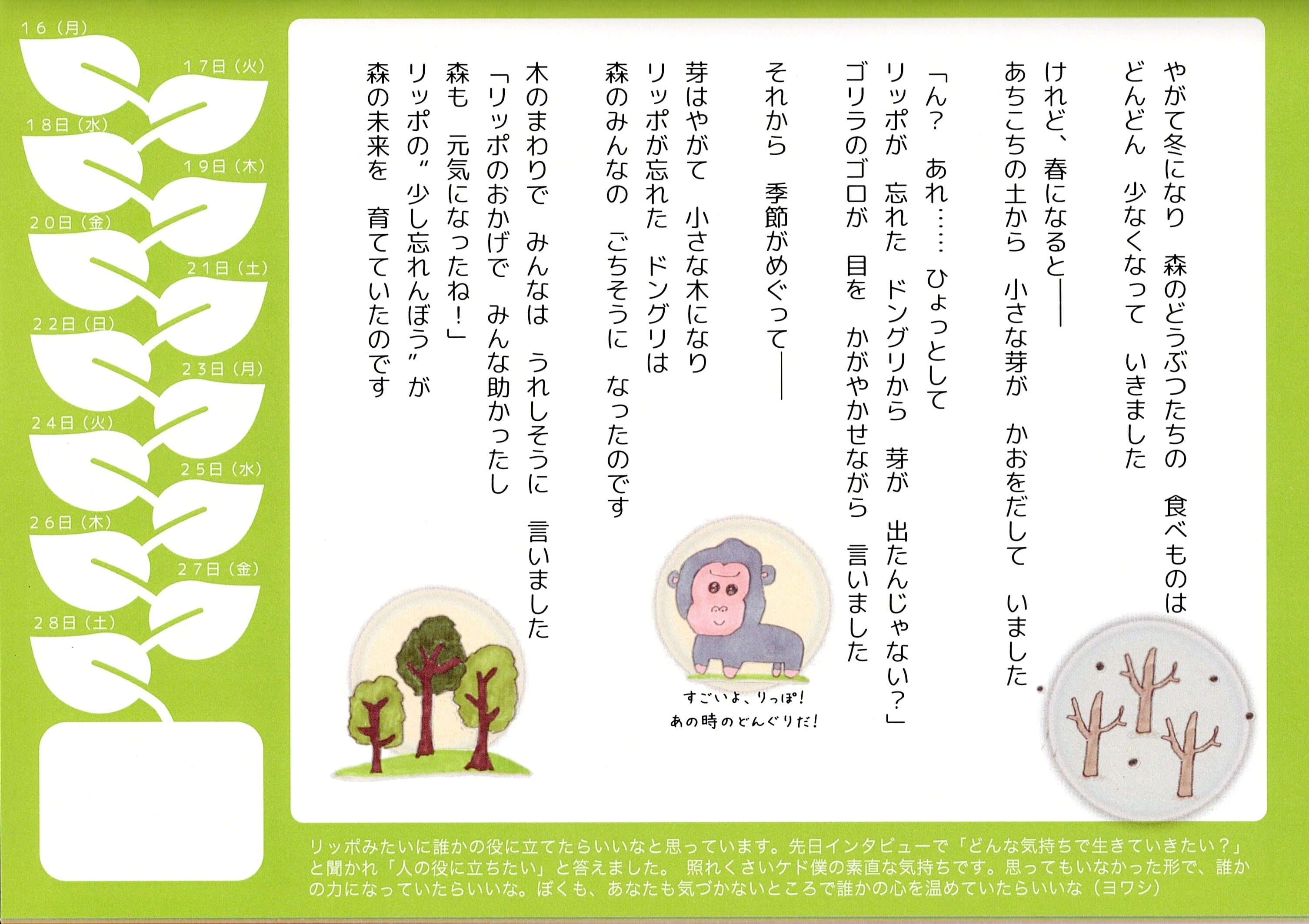 この森を歩くあなたにも、そんな光がそっと届きますように。